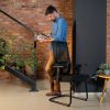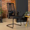 Okvir: crni okvir Naslon: crni mrežasti naslon Sjedalo: pjena visoke gustoće prošivena crnim tekstilom Naslon za ruke: fiksni Baza: crni metal
