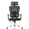 Okvir i ručke: crni okvir i crne ručke. Naslon: zatezna mreža. Sjedalo: oblikovana pjena visoke gustoće, podesivo po dubini. Naslon za glavu: podesivo po visini, kutu i dubini. Naslon za ruke: 2D - podešavanje visine i naprijed-natrag. Lumbalna potpora: dinamička lumbalna potpora. Višenamjenski mehanizam: višetočkovno zaključavanje nagiba, automatski nagib kontroliran gravitacijom (jednostavan sinkroni mehanizam). Baza: kromirana s pet krakova. Kotači: univerzalni kotači promjera 60 mm. Visina korisnika: 160 do 200 cm. Nosivost: 120 kg. Jamstvo: 2 godine.