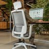 Naslon: srednje visoki naslon izrađen od visokokvalitetne, prozračne mreže. Sjedalo: oblikovano pjenasto sjedalo prošiveno tekstilom, podesivo po dubini Naslon za glavu: podesiv po visini i kutu (moguće i bez naslona za glavu) Lumbalna podrška: podesiva po visini Naslon za ruke: 3D ručke podesive po visini, kutu, naprijed-natrag Sinkroni mehanizam s zaključavanjem u 3 položaja i podesivim otporom. Visina korisnika: 160 do 185 cm; Nosivost: 120 kg Jamstvo: 2 godine