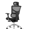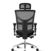 Crni okvir, 4D naslon za glavu, mrežasti naslon, tapecirano sjedalo s tkaninom - podesivo po dubini, aluminijska baza JN01, podizač 120 mm, 4D ručke, sinkroni mehanizam, naslon podesiv po visini, dinamička lumbalna potpora. Visina korisnika: 170 do 195 cm; Nosivost: 130 kg Jamstvo: 2 godine